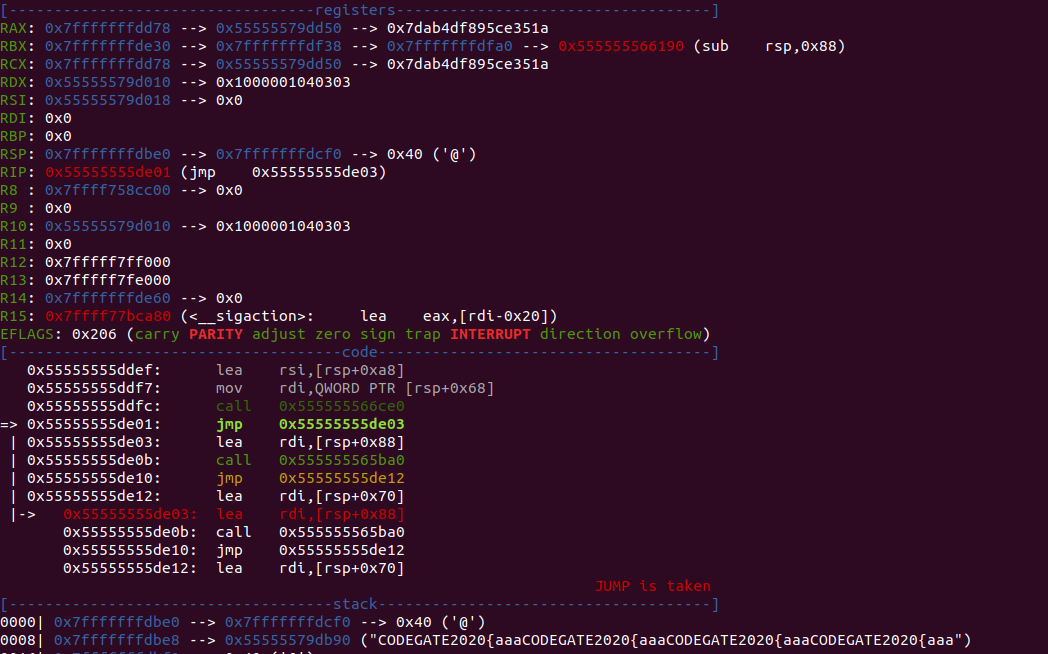 그때, loc_121ec의 함수에서 제가 입력값으로 준 CODEGATE2020{aaa를 볼 수 있었습니다.